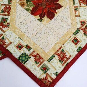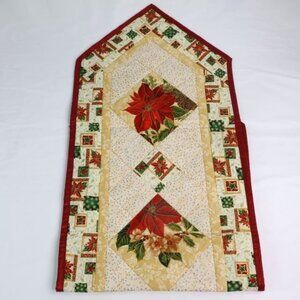 Christmas Table Runner Poinsettia Table Linen Sparkly Red Trim 51.5"x15.5"
