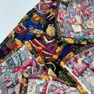 Christmas Tablecloth Card Table Small Teddy Bears Festive Holiday Handmade 41x40