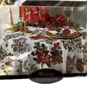Christmas Tablecloth Holiday Classics Holly Floral 52x70 Rectangle NEW