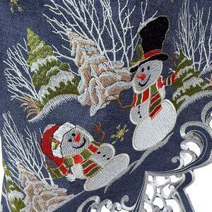 Christmas Tablecloth Holiday Snowmen Blue 32" Square Topper Embroidered