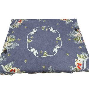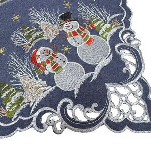 Christmas Tablecloth Holiday Snowmen Blue 32" Square Topper Embroidered
