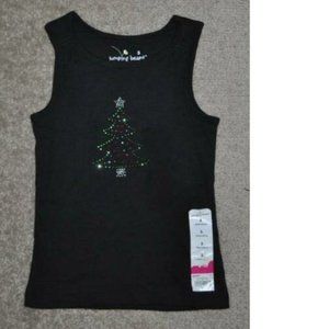 *Christmas Tank Top sz 4 Black Studded Christmas Tree Crew Ribbed Girls