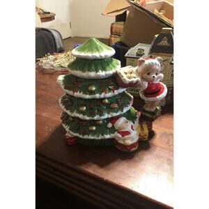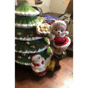 Christmas tree tea pot with a Santa bear for the handle and gifts under the tree. Very festive. Hot chocolate pot