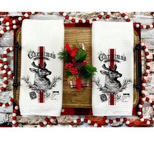 Christmas Tea Towels, Set of 2, New, Kitchen and Bath, Reindeer, Christmas gift
