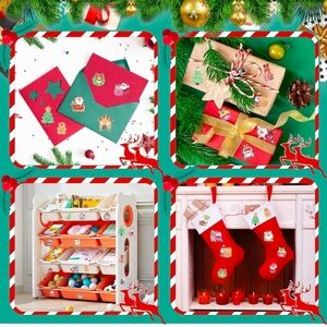 Festive Christmas stickers. Includes Santa, snowmen, and holiday scenes. Perfect for crafts and decoration.