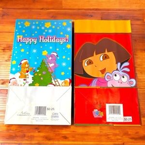 • 1 Dora the Explorer Bag: ‘Feliz Navidad’ design with Dora, Boots the Monkey, and stars wearing Santa hats.
