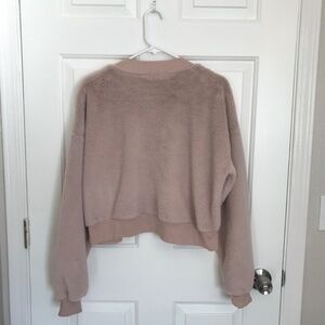 Christmas Third Wish Faux-Fur Sequin Snowman Cropped Sweatshirt Size L Mauve