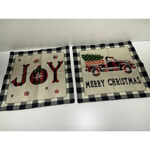Christmas Throw Pillows Zippered Covers Lot of Two Buffalo Check Farmhouse 17X17 New