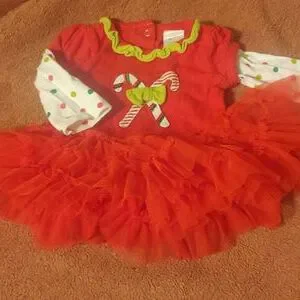 Cute Christmas Top. Originally had matching panys/leggings but I can't seem to locate those. Ruffles on bottom. Worn only once. Would be suoer cute to wear for Christmas!! (And I can ship immediately, Priority.)