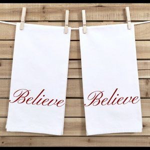 *Christmas Tea Towels, Set of 2, Believe, Kitchen or Bathroom
