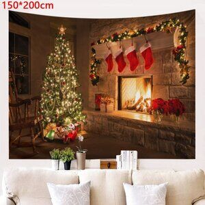 Christmas Tree And Fireplace Printed Tapestry