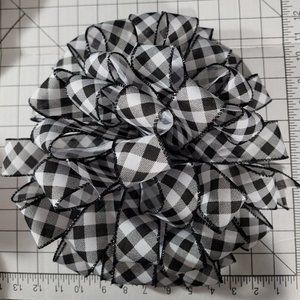Christmas Tree Bow Topper, Black and White Diamond Harlequin 44 Loop Bow Topper