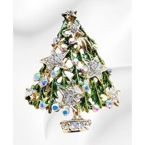 Christmas Tree Brooch Pin New Aurora Borealis Rhinestones Stars Northern…