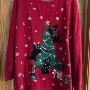 Attention Cat Lovers!!! Festive Karen Scott holiday sweater size 3X. I loved this as a casual pullover, but some might find it more as an " ugly " Christmas sweater.