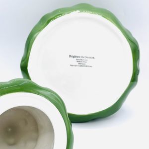 The jar is branded with "Brighten the Season" and is ideal as a centerpiece during Christmas celebrations. The jar is made of ceramic material and can be used for many holiday seasons to come. Add a touch of seasonal cheer to your home with this charming Christmas Tree Ceramic Lidded Cookie Jar.