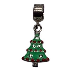 Add a festive touch to your European bracelet collection with this detailed Christmas tree charm featuring green and red enamel accents.