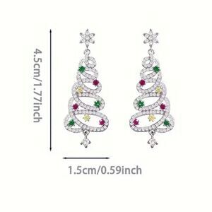 Christmas tree dangle earrings with faux gemstone ornaments in gold or silver tone.