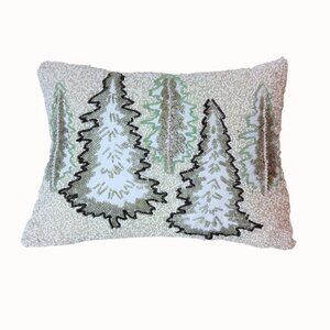 beaded pillow, christmas pillow, winter decor, 34th and pine, holiday cushion, rustic cabin decor, cozy lodge accent, christmas tree pillow, beaded throw pillow, neutral holiday decor, woodland home style, winter home accent, festive couch pillow
