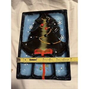 Christmas Tree Dolomite Chip & Dip Veg Plate Holiday Serving Platter Porcelain