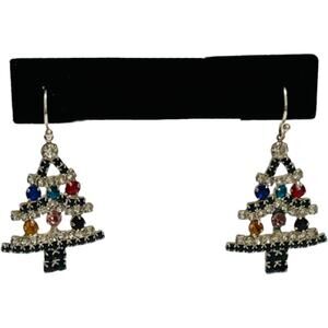 Christmas Tree Earrings Silver Gold Crystals Bundle Lot 3 Pairs Festive Holiday