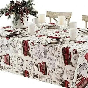 Christmas Tree Farm Fabric Holiday Tablecloth - Nostalgic Retro Christmas Farm Truck Print No Iron and Stain Resistant Fabric Tablecloth, 60” x 102” Oblong/Rectangle