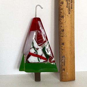 Christmas Tree Fused Glass Handmade Ornament 6in Long with Embedded Hook