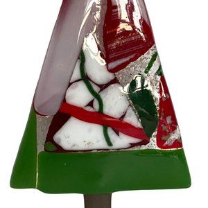 Crafted by a skilled glass artisan, the ornament features a stunning green and red Christmas tree design with fun & funky color and shape elements added. Made from high-quality artisanal glass, this ornament is perfect for glass collectors and holiday enthusiasts alike.