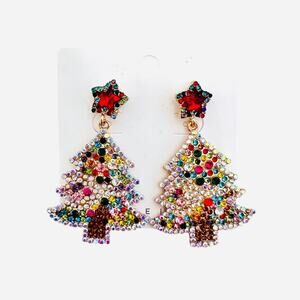 Christmas Tree Sparkling Rhinestone Statement Dangle Earrings. Post backs. Silicone stoppers. Very colorful and festive! Item is new and unused. No tags. Comes with card holder. These are on the larger size. Lots of bling for the holiday season!