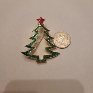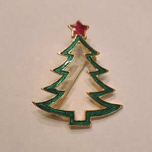 Christmas Tree Green Enamel Silhouette Brooch Pin