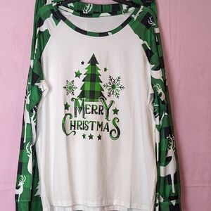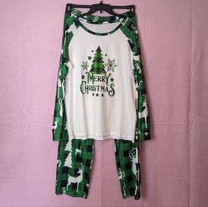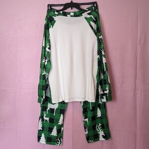 Christmas Tree Green and White Long Sleeve Tee and Matching Pants Pajamas Set