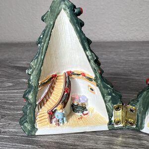 Christmas Tree Hinged Diorama Santa Scene Inside Tree 3D Vintage Decoration 3 In