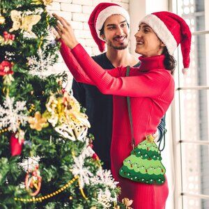 Features: Chic leather crossbody bag with eye-catching embroidered Christmas tree design. Compact size with adjustable strap for a comfortable fit. Perfect for adding a festive touch to your everyday outfits or holiday outings.