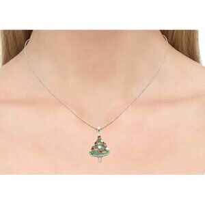 This festive Christmas tree necklace brings holiday cheer with its vibrant red, green & clear crystals set in an open cut design