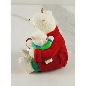 Christmas Tree Ornament AGC Teddy Bear w/ Baby 2 3/4" To My Dad Figurine 20s Vtg