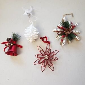 Christmas Tree Ornaments In Beautiful reds, Whites and Pine, Garland, Decoration