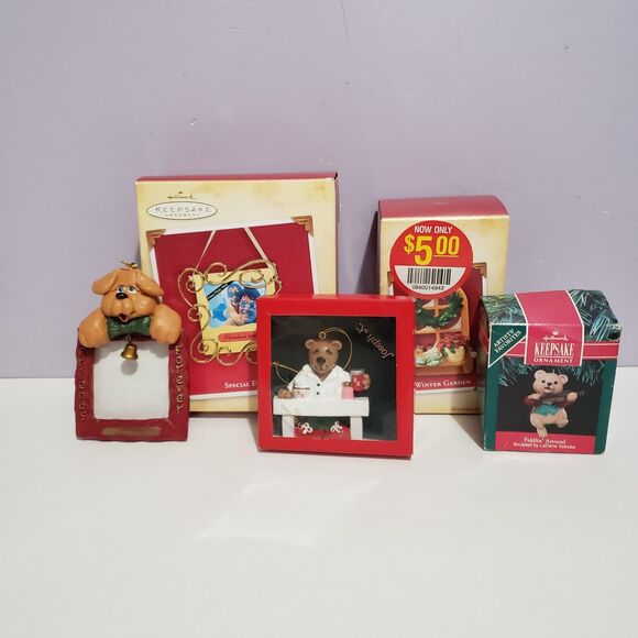 Christmas Tree Ornaments Lot Of 5 Assorted Picture Frames/Bears