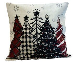 pillow cover, Christmas pillow, holiday decor, festive cushion, linen cover, snowflake design, winter home, sofa accessory, tree illustration, envelope closure, beige pillow, red accents, holiday gift, festive decor, holiday pillow cover, Christmas decor, cushion cover, holiday home, Christmas tree, throw pillow case, rustic, farmhouse
