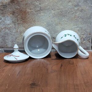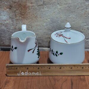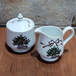 Christmas Tree & Ribbon Covered Sugar Bowl & Creamer Japan