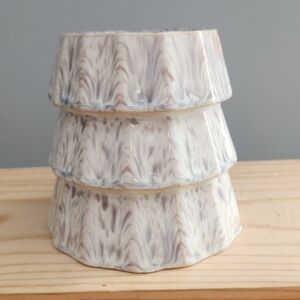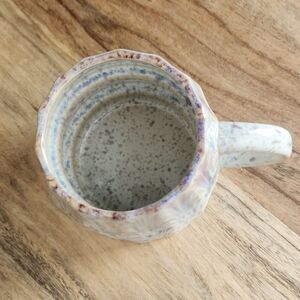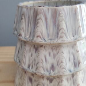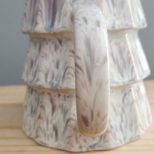 Unique tree shaped ceramic stoneware mug with a wavy glaze design. Features a blend of cream, tan and purple hues. This mug is GORGEOUS!!! Ideal for your hot or cold beverages.