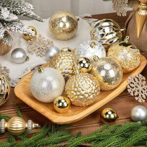 Christmas Tree Shatterproof Gold & Silver 92 Piece Ornament Decoration Set