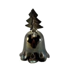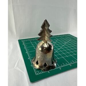 Christmas Tree Silver Plated Holiday Bell w/Cutouts Man Made in India Vintage