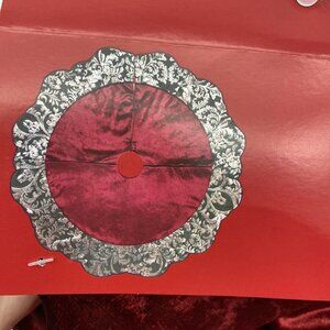 Christmas Tree Skirt 48" At Home Red Plush Green Gold Trim Holiday Elegant