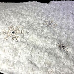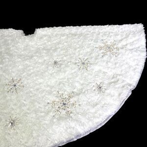 Christmas Tree Skirt 48 inches White Christmas Faux Fur Gold Snowflake Gemstones