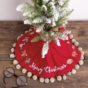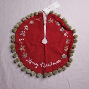 Christmas Tree Skirt Small 12.5" Diameter Merry Christmas Floral Embroidery Red