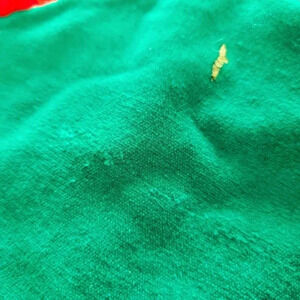 Add a touch of elegance to your Christmas tree with this stunning velvet tree skirt. The green and red velvet with the outlined faux train track design is perfect for the holiday season and will make your tree stand out. Looks beautiful staged with a train on the train track design! The circle shape and beautiful material make it a great choice for any Christmas tree, whether you have a tall or short tree. Made with high-quality materials, this tree skirt is durable. It is perfect for adding a festive touch to your home decor. Get ready to impress your guests this Christmas season with this beautiful tree skirt. Very good condition. Small blemish, as pictured. Measures 46" diameter.