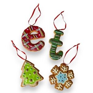 Christmas Tree Snowflake Letters Gingerbread Cookie Ornaments Set Of 4 Tin