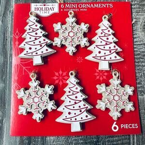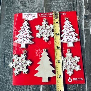 NWT set of 6 white red and tan Christmas tree and snowflake decorated holiday ornaments. Looks like Christmas cookies. Could also be used with a bow and gift tag decorations. Multiple sets available, please ask if interested in bundling.