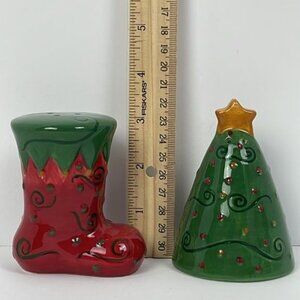 Christmas Tree & Stocking Handpainted Salt n Pepper Shakers by Tabletops Gallery