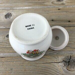 Christmas Tree Stoneware Sugar Bowl With Lid 4.25" Tall Made In China