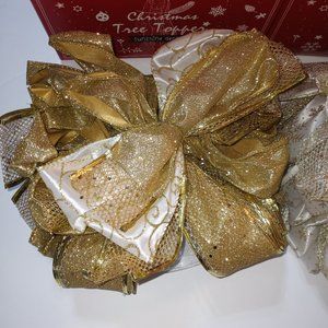 Christmas Tree Topper Bow Ornament with Glitter Satin Mesh Streamer